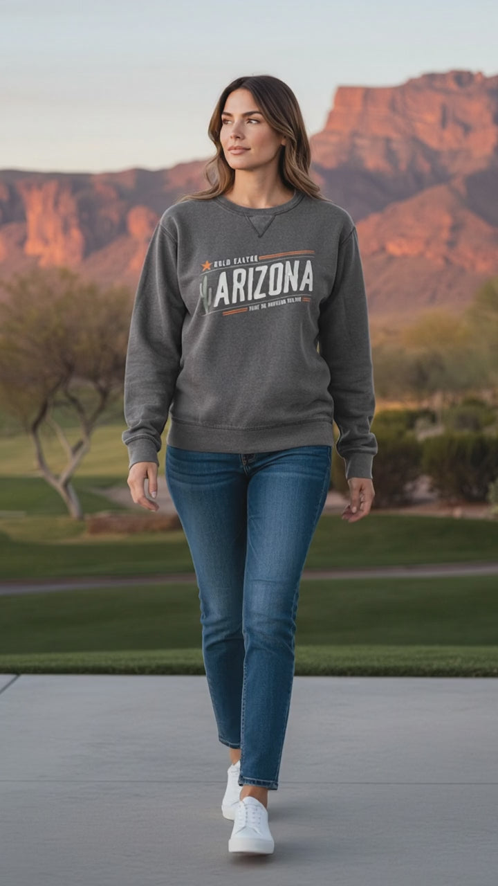 Get ready for your next adventure with the Take a Hike Burnout Fleece Crew! Perfect for trail days, its cozy fleece keeps you comfy while you chase amazing views through the Superstition Mountains. Featuring a stylish footprint design, this crew adds a playful touch to your hike-ready wardrobe. Embrace the outdoors in warmth and style!
