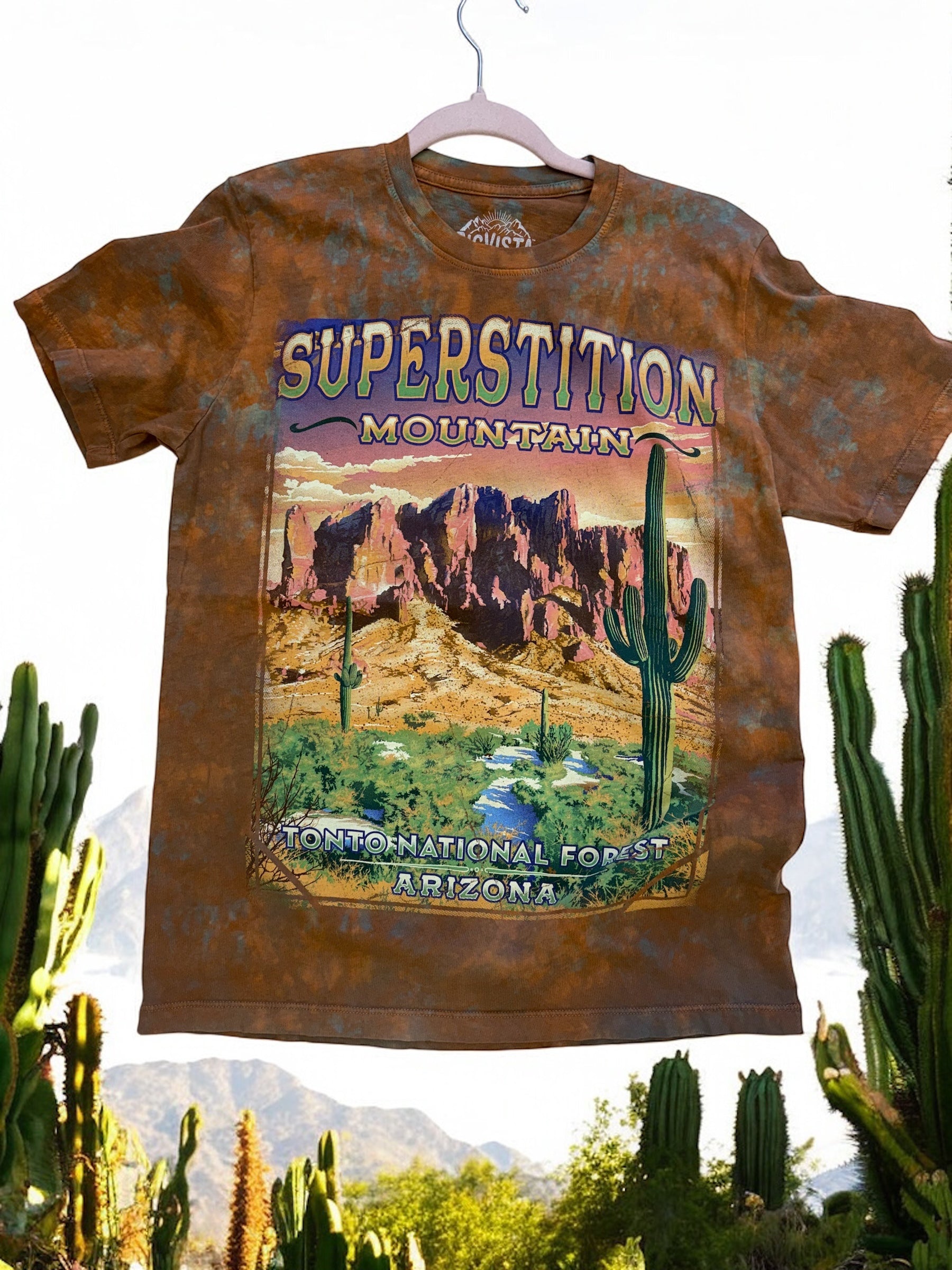 Experience the true essence of America with our Tonto National Forest Crew Neck T Shirt. Each garment is thoughtfully crafted by skilled artisans, featuring original and exclusive hand-illustrated artwork. Proudly made by American workers and hand dyed with eco friendly dyes. Printed with soft, breathable, and earth-friendly inks. Join us in celebrating the beauty of America!