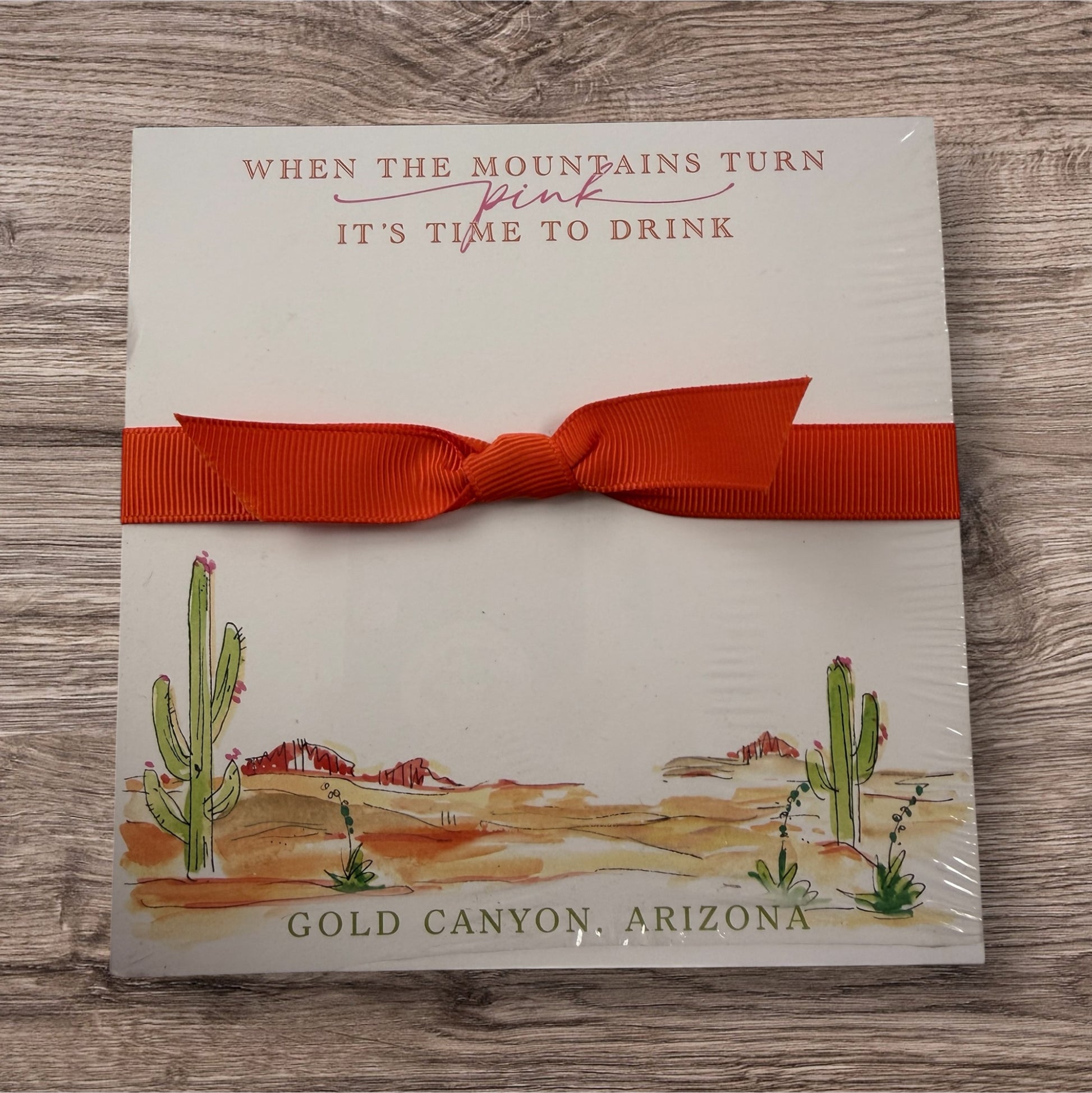 Capture your desert daydreams with the When the Mountains Turn Pink Lux Notepad-Custom. Wrapped up in a playful pink bow, this whimsical notepad invites you to jot down thoughts, plans, or inspiration beneath skies blushing like twilight. Featuring charming cactus designs and desert vibes, it's the perfect companion for those moments when the mountain turns pink and your creativity blooms. Add a touch of whimsy to your desk and let your ideas flourish like a desert sunset.